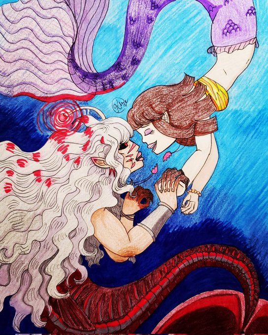 [#mermay2022 #mermay ]Hey... what if I was an epipelagic mermaid and your were an abyssopelagic mermaid... and we were both girls 🧜🏻♀️😳🧜🏼♀️ Featuring @lowresicecube 's Yutu!! #jjbaoc #jojooc #jojosona #fancharacters #mermaid #traditionalart #artistsontwitter #illustration