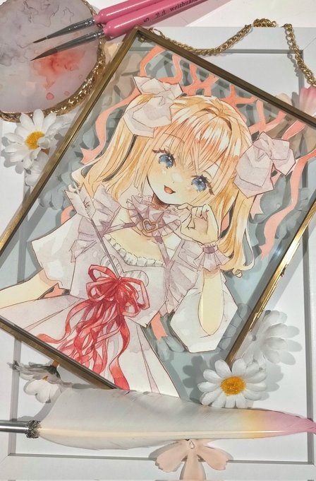 #fancydreamy展Ⅱ #水彩 #イラスト 自然光で撮った額装用原画です。額装後は映り込みが消せなくて撮れなかったです… 額装1点、ドローイング2点で参加しています。 おまけといっては何ですが、いずれもラフ画をお付けしております。 ドローイングのラフは撮り忘れました(>_<)