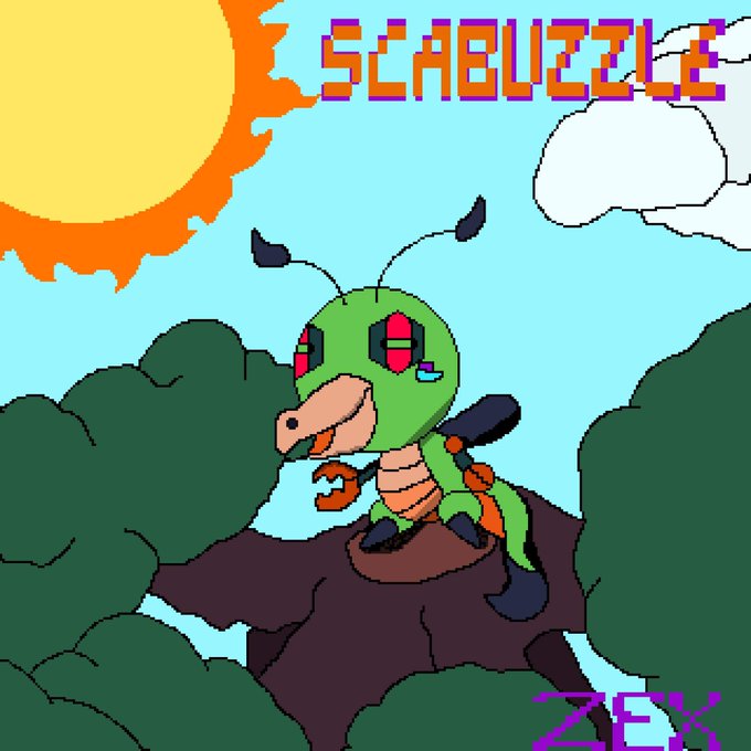 Its a Dragon/Bug!! Everyone meet Scabuzzle!! #inktober2021 #fanmadepokemon #pixelart #pokemon #inktober2021day11