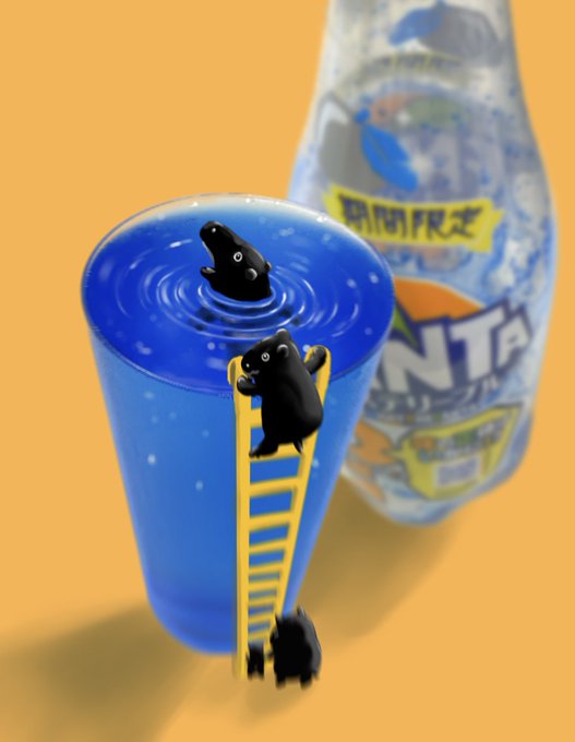 娘に家族を増やしてと言われたので4匹家族にしました 青いジュースはファンタ、何味か分からなかった…何味? #fanta #青いファンタ #イラスト好きさんと繋がりたい #絵描きさんと繋がりたい #procreate