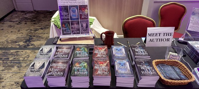 The Great Con-Junction hosted by @Thames_Con. It's so great to meet all these talented folks who worked on the #darkcrtstal . I'm here with my #fantasy novellas, Tales of the #Ravensdaughter #fantasyfans #fantasybooks #fantasybookseries #fantasyconvention #cosplay