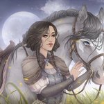Spring Moon and Blood Project. My rarely drawn other protagonist, Slynne, the young priestess. #oc #lineart #wip #character #fantasyoc #horse #fantasy #priestess #fantasyart