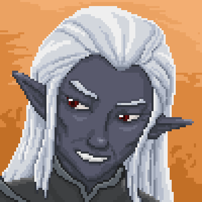 Idle Champions Monday! This dude is K'thriss, a Drow Warlock #idlechampions #dnd #kthriss #drow #warlock #pixelart #pixelportrait #fantasyportrait #gamecharacter