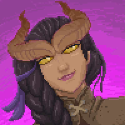 Idle Champions Monday! This is odd lady is Strix, a Tiefling Sorcerer #dnd #idlechampions #strix #tiefling #sorcerer #pixelart #pixelportrait #fantasyportrait #aseprite