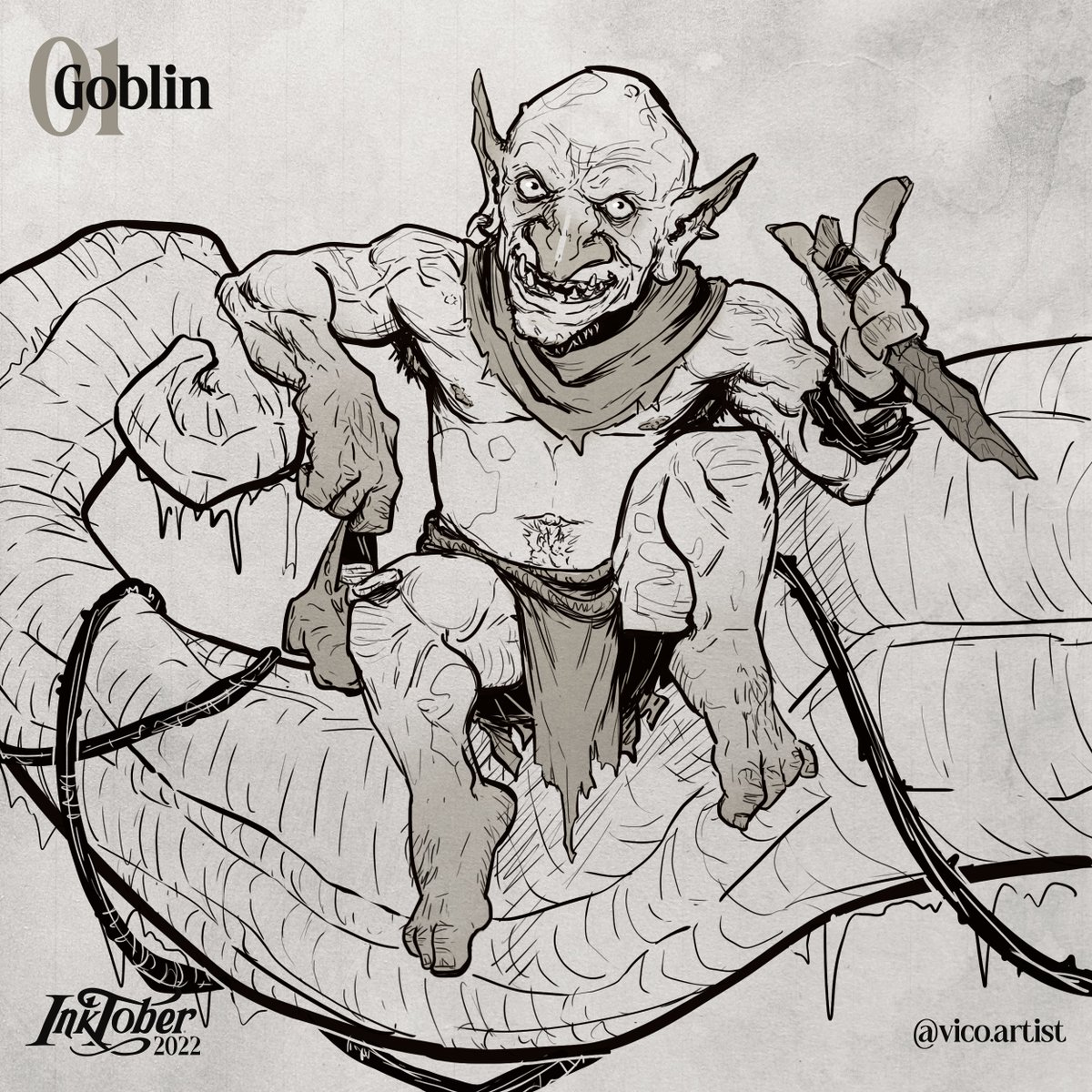 Let's start with the Goblin as the #01. #inktober #inktober2022 #ink #draw #drawing #fantasy #fantasytober