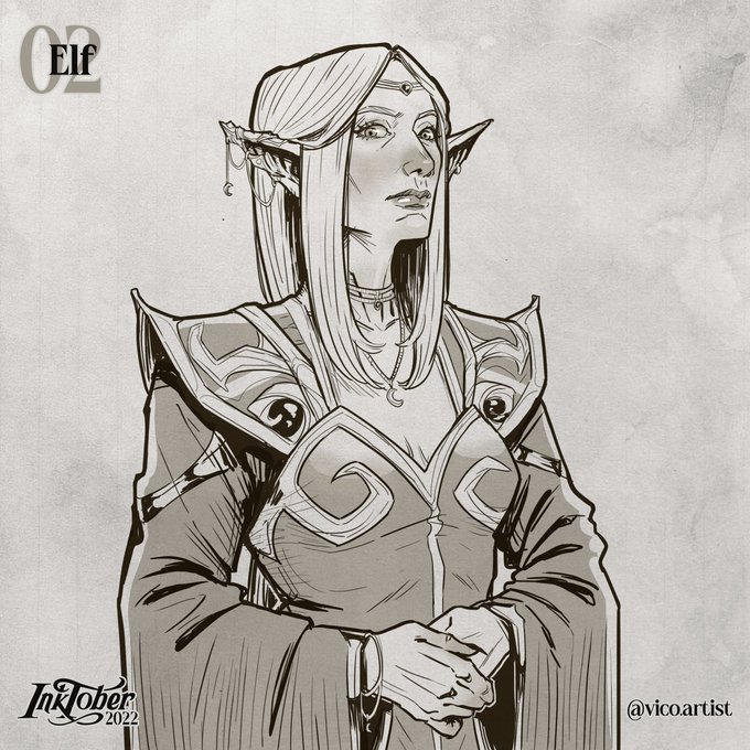 Sunday in the morning after Payday, everybody's destroyed, but here I am, folks! Second day, the #02 a Noble Elf. #inktober #inktober2022 #ink #draw #drawing #fantasy #fantasytober