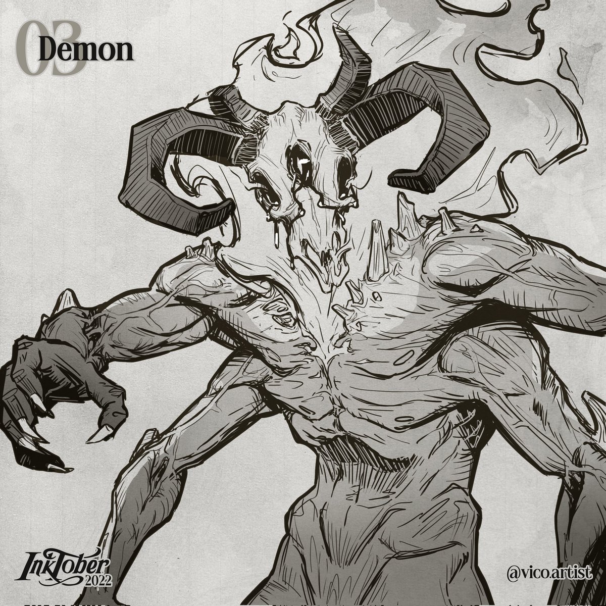 On the day #03, we summon a Demon. #inktober #inktober2022 #ink #draw #drawing #fantasy #fantasytober
