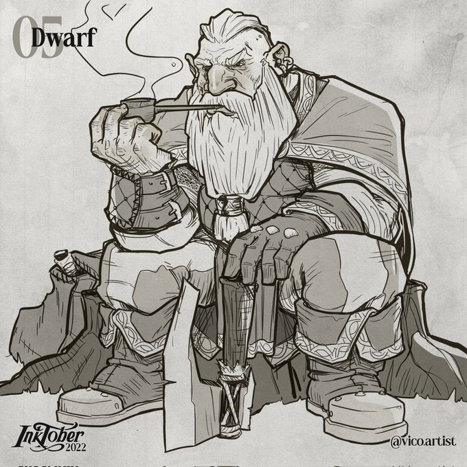For social purposes I'm posting this today, but no worries, I'll catch up soon. I loooved drawing a Dwarf for the day #05. #inktober #inktober2022 #ink #draw #drawing #fantasy #fantasytober