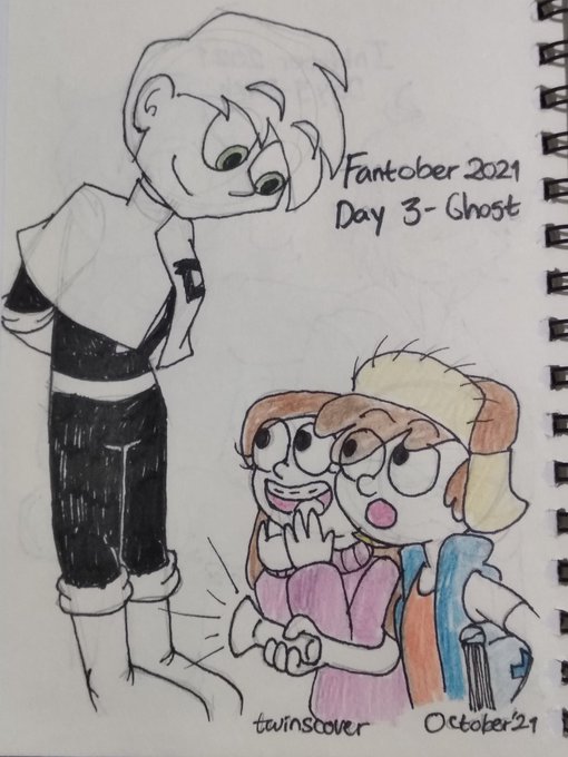 Late Fantober day 3 - Ghost I always love this crossover about dipper and Mabel met Danny phantom. Love twins will follow him and become friends. #fantober #fantober2021 #inktober #crossover #GravityFalls #dannyphantom