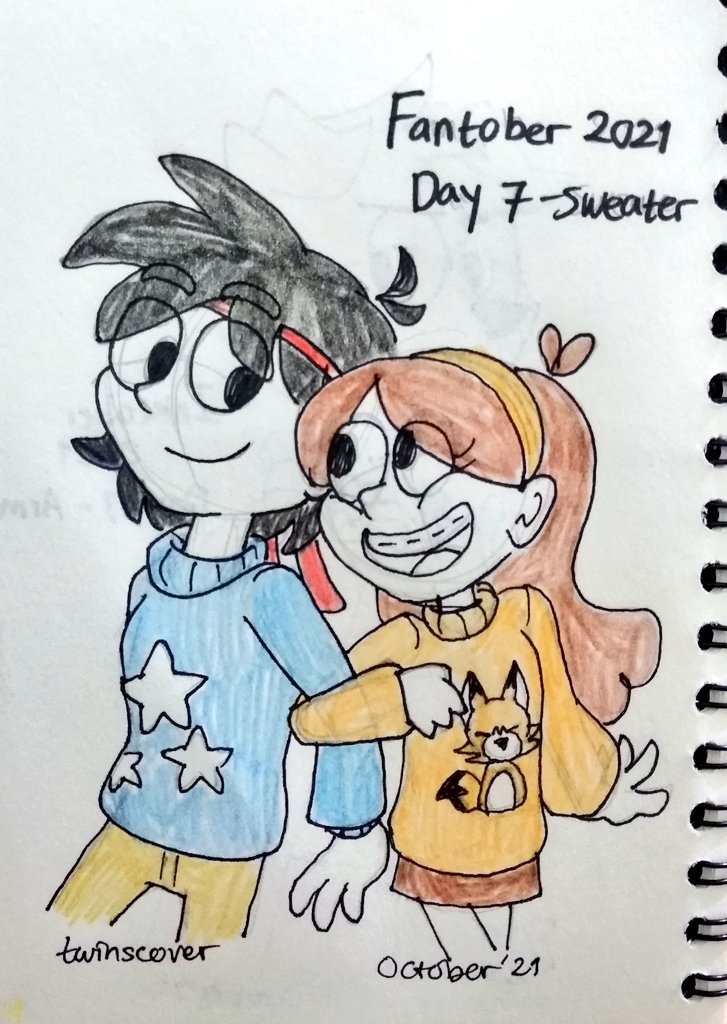 Fantober day 7 - Sweater Mabel made sweaters for Yama and they wore it together as sweaters couple. #fantober #fantober2021 #inktober #GravityFalls #ocxcanon