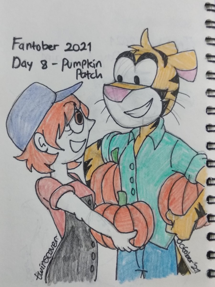 Fantober day 8 - Pumpkin Patch Penny and Tigger joining pumpkin patch together. P.s. i hope nobody think on her head is a hat, not a pot. #fantober #fantober2021 #inktober #crossover