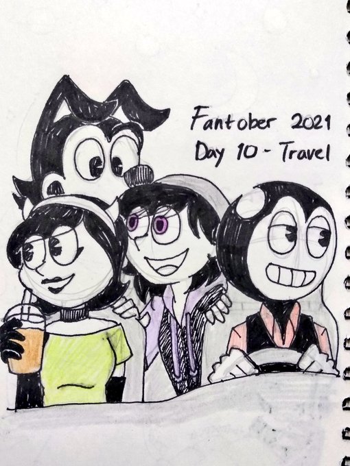 Fantober day 10 - Travel Bendy and his friends are going travel with car. They're look alike family go trip together. #fantober #fantober2021 #inktober #Bendy_and_the_ink_machine #BATIM