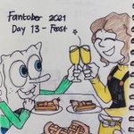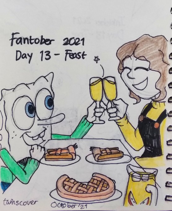 Fantober day 13 - Feast SpongeBob and Mary are feast together with pie and apple juice. They're tried fall feast as theme date. #fantober #fantober2021 #inktober #spongebobsquarepants #ocxcanon