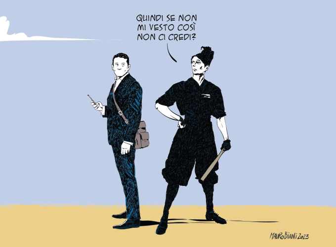 Ora #Atlantide @La7tv @andreapurgatori presenta "Liberate il duce. Dal Gran Consiglio al Gran Sasso. La fuga di #Mussolini nelle braccia di #Hitler dopo la caduta del #fascismo. Con #AntonioScurati #LucianoCanfora #NadiaUrbinati" E la mia vignetta.