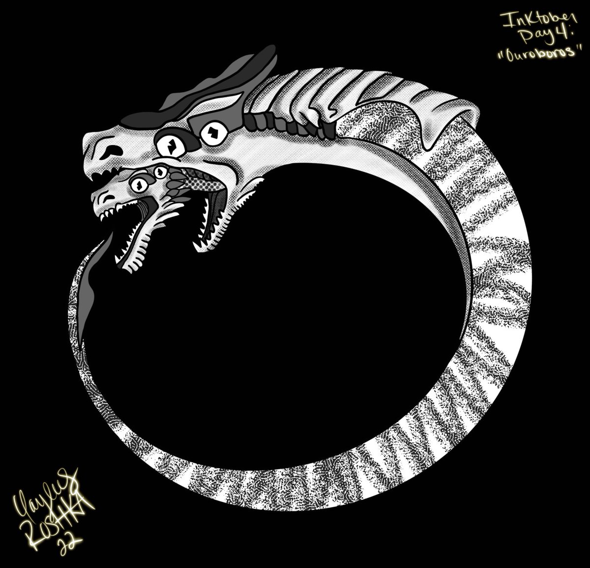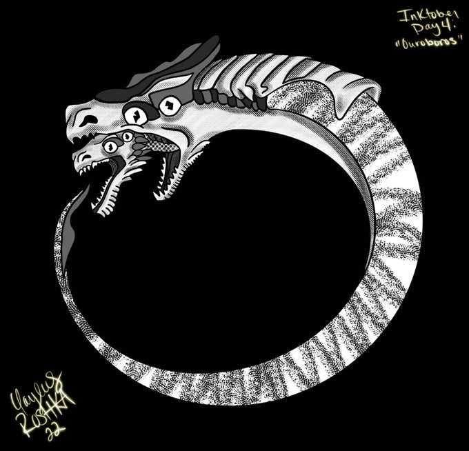 💀INKTOBER💀 Day 4: Ouroboros Spooky draconian snake with two mouths to destroy itself with 🐍 . #inktober2022 #Inktober #DigitalArtist #Artists #illustration #procreate #artwork #drawing #monster #creatureart #snake #fantasyart #ArtistOnTwitter #fauntober2022 #Original