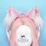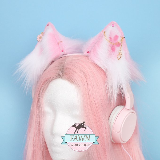 Sakura ears for headset 🥰 I made them for myself! :D But if you'd like to get similar pair I'd love to make them for you! Feel free to send me DM Price:80$ usd + 7$ shipping Turnaround time: 6-7 weeks #furry #furryart #furryartist #furrycustom #furryears #fauxfur #handmade