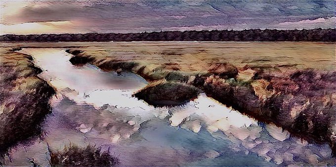 Marshes in Autumn with a sultry sky - a quiet day #Autumn #marshes #horizon #wetland #purplecolor #faversham #seasalter #whitstable #ArtistOnTwitter