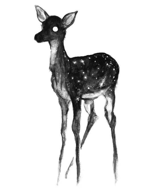 Duskborne 🌑 A painting I made back in the winter of 2017, when I was just beginning to find my footing as an illustrator.. #throwback #fawn #creepycute #pencildrawing #watercolor