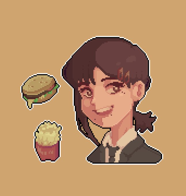 #fearprototype #digitalart #pixelart . #pixel version of #kobeni for #chainsawman . Also fries and burgers because why not 🍟 🍔✨