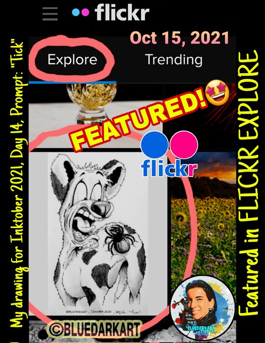 🤩 I'm happy to annunce that my #Drawing " #Tick " ( #Inktober2021 #Prompt) have been #featured on #Flickr Explore, the Fickr #Homepage!!😃wooo!! ▪︎ Come visit my Flickr #Gallery HERE 👉🏾 flickr.com/photos/bluedar… ▪︎ Via #WordPress 👉🏾 bluedarkart.wordpress.com/2021/10/16/blu…