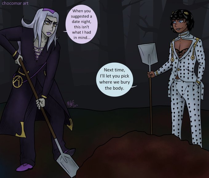 #Februabba Day 6: Grave 🪦 Lol, no sad prompts. They're just having a date night! 😁 @februabba2023 #februabba2023 #bruabba #abbabru #brunobucciarati #leoneabbacchio #art #jjba #JoJosBizarreAdventure #goldenwind #anime #fanart