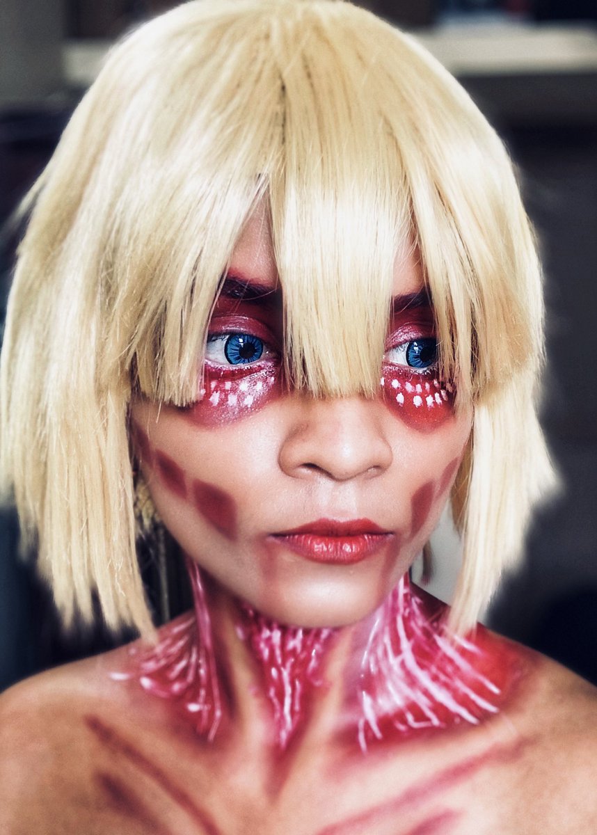 Genderbent Female Titan Makeup look 🔥 . #cosplayer #AttackOnTitan #femaletitan #annieleonhart #makeup #mehronmakeup #nyx #anime #cosplay