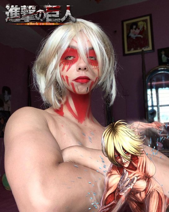 Long time no see Twitter! My female titan cosplay attempt, hope you'll like it! 🤍🤍🤍 #shingekinokyojin #AttackOnTitan #femaletitan #cosplay