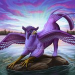 Here is @maggock 's #gryphon OC! She is indeed lavender, with a floofy tail, and looks at home amid sweeping nature vistas ❤️ I painted this for #ArtFight2022, an online OC art trade event Character © Maggock Artwork © EerieAyres #ArtFight #griffin #FantasyArt #feral #FeralArt