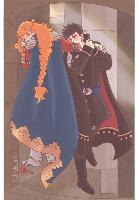 ✨ Meeting at the Goddess tower ✨ . . I absolutely loved making this recreation of the painting ‘The meeting on the turret stair’ for @Seb_Fantastic 💕💕 . . #ferdibert #ferdinandvonaegir #hubertvonvestra #fe3h
