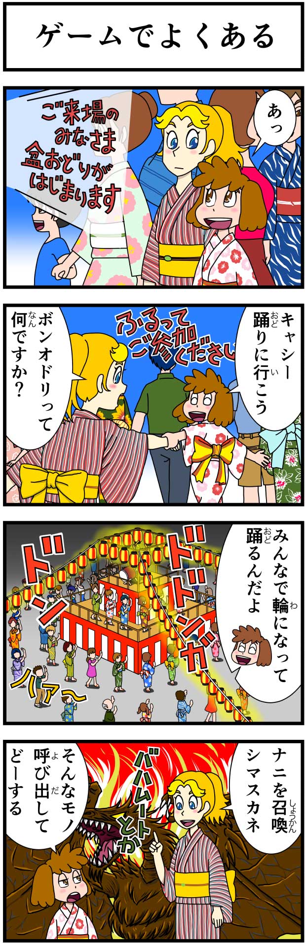 #キャシーとわたし クラシック 一昨年の8月のふたりは、こんなでした。 第18話 キャシーと夏休み ドゾー #ほのぼの #漫画 #創作漫画 #4コマ #4コママンガ #漫画が読めるハッシュタグ #漫画がよめるハッシュタグ #お盆 #夏祭り #祭り #manga #festivals