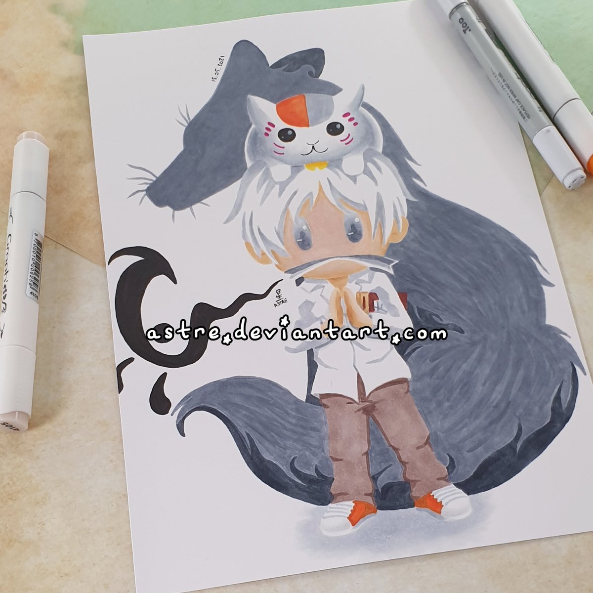 [Natsume Takashi] #FanArt Natsume Takashi et Nyanko-sensei (Madara) ! #夏目友人帳 #lePactedesYokai #NatsumeYuujinchou #NatsumesBookOfFriends #alcoholmarkers #copic #feutrealcool #アルコールマーカー #コピック #tradi #traditionnal #artwork #illustration #art #イラスト