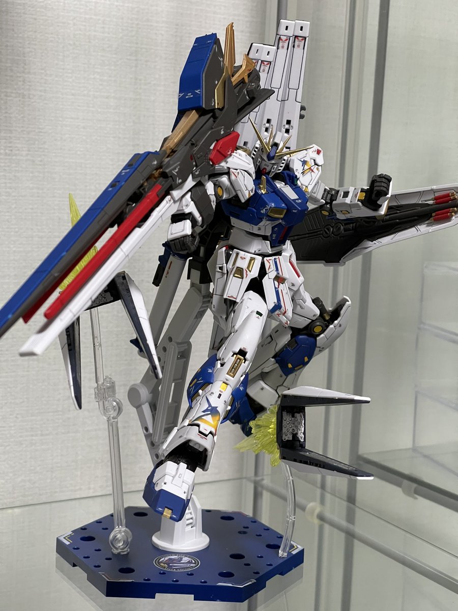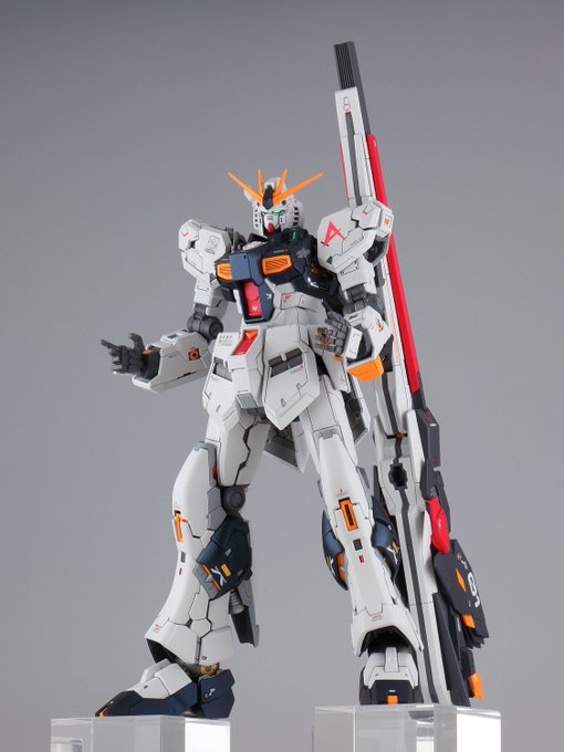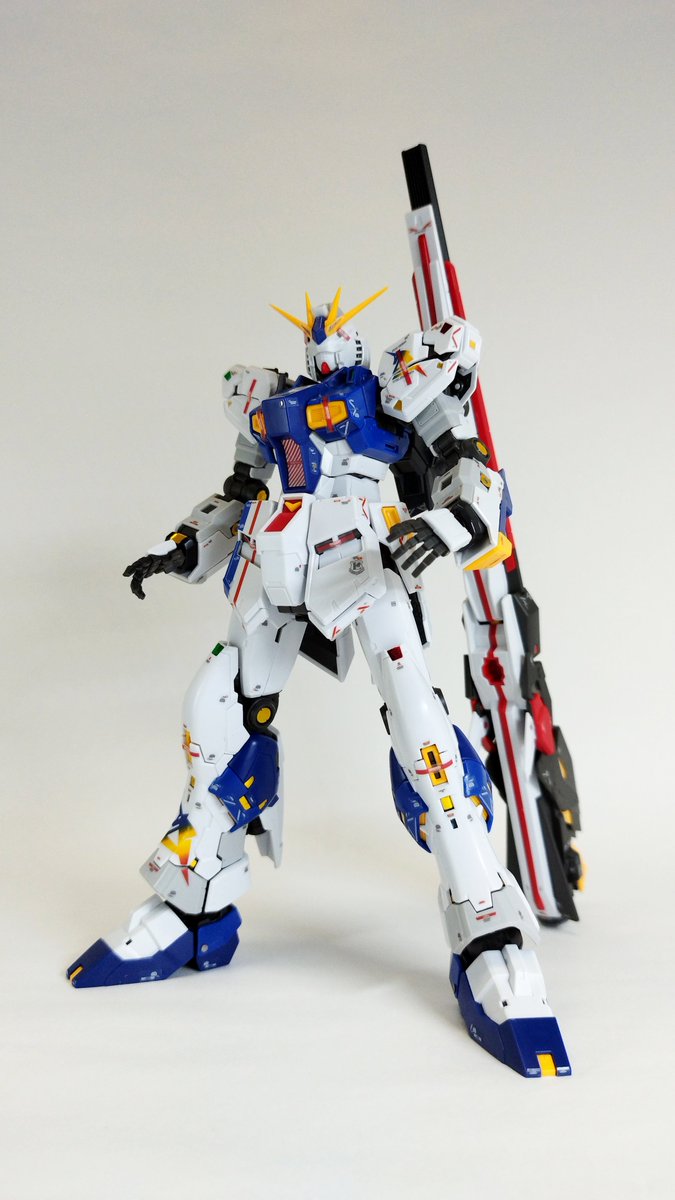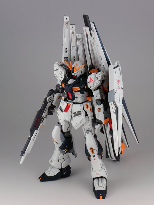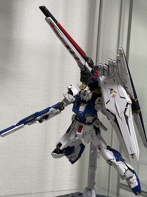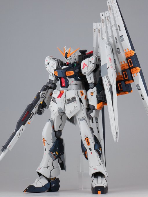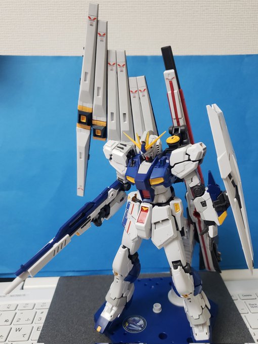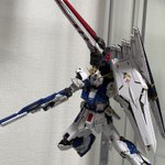 おはようございます。 RGffνガンダム完成しました。部分塗装で折角だし乗せられるなら乗せてしまえとフィンファンネルもセットして。νガンダムはどれもカッコよくてイイなぁ(*´∇`*) #ガンプラ #ガンプラ好きと繋がりたい #ffνガンダム