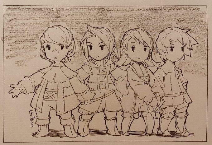 FF3の光の4戦士です♪ ピクセルリマスター版には出てこないけど、この4人大好きです!3の世界観も好きなので少しでも近づけるよう頑張ったっす٩(ˊᗜˋ*)و #アトリエの系譜 #絵描きさんと繫がりたい #ファイナルファンタジーXIV #FF3
