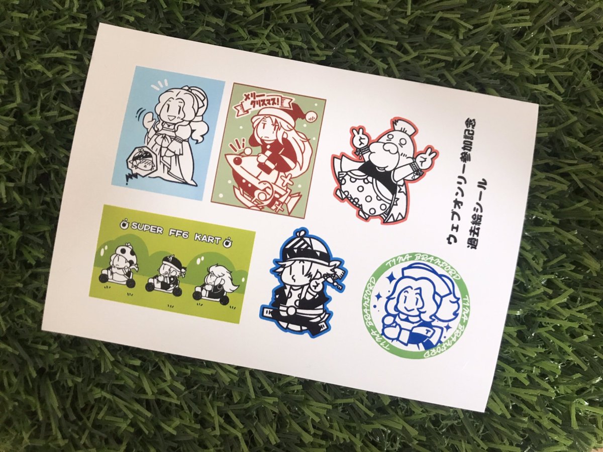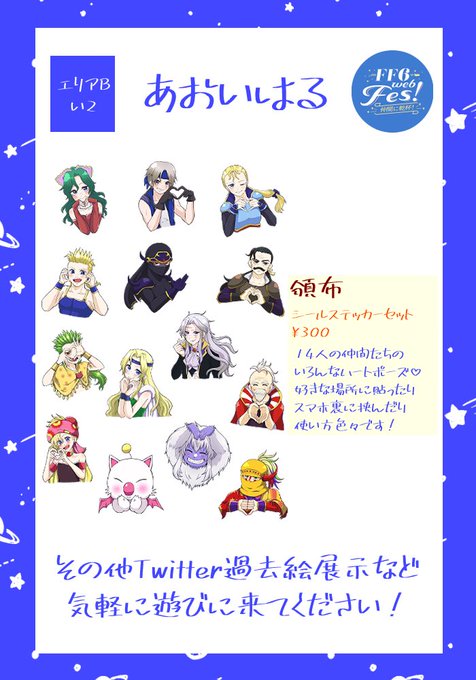あと思い立ってイベント参加記念にお気に入りの過去絵をシールプリント登録したのでよろしければ〜🙌番号は当日サークルカットをクリックして頂けると展示スペースに行けるのでそちらで公開します😊 #ff6_web_fes_おしながき