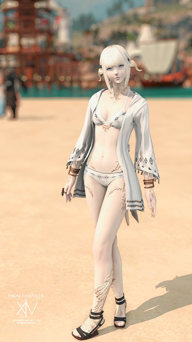 ミニキャラNo.193 なれっじさん(@ruche__fenrir) 先日の紅蓮祭ゲリラ企画の追加当選者様 サラと同じ白染色の水着🤍 アウラさんは 鱗があるから水着だとより美しく見えますね✨ 今までで一番鱗を表現したミニキャラになった😊 #osaraworks #FF14 #FF14ミニキャラ #FF14イラスト #ffxivart #ffxivchibi