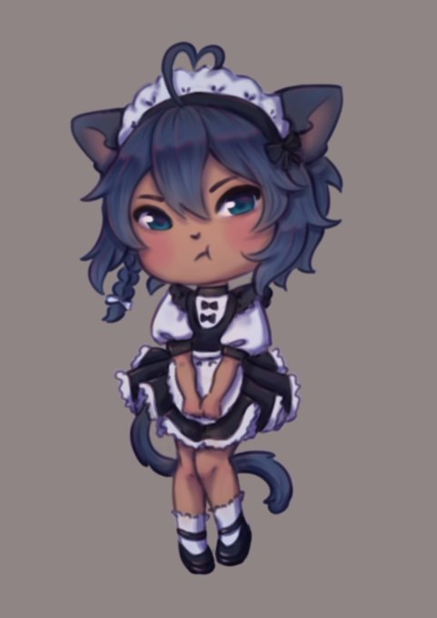 fanart of my fav cat boi in final fantasy xiv :3 maid dresses are da best~ - please do NOT redistribute, copy, edit or use my art thank you<3 - #ffxivfanart #ffxivart #ffxivchibi #ffxivwol #chibi