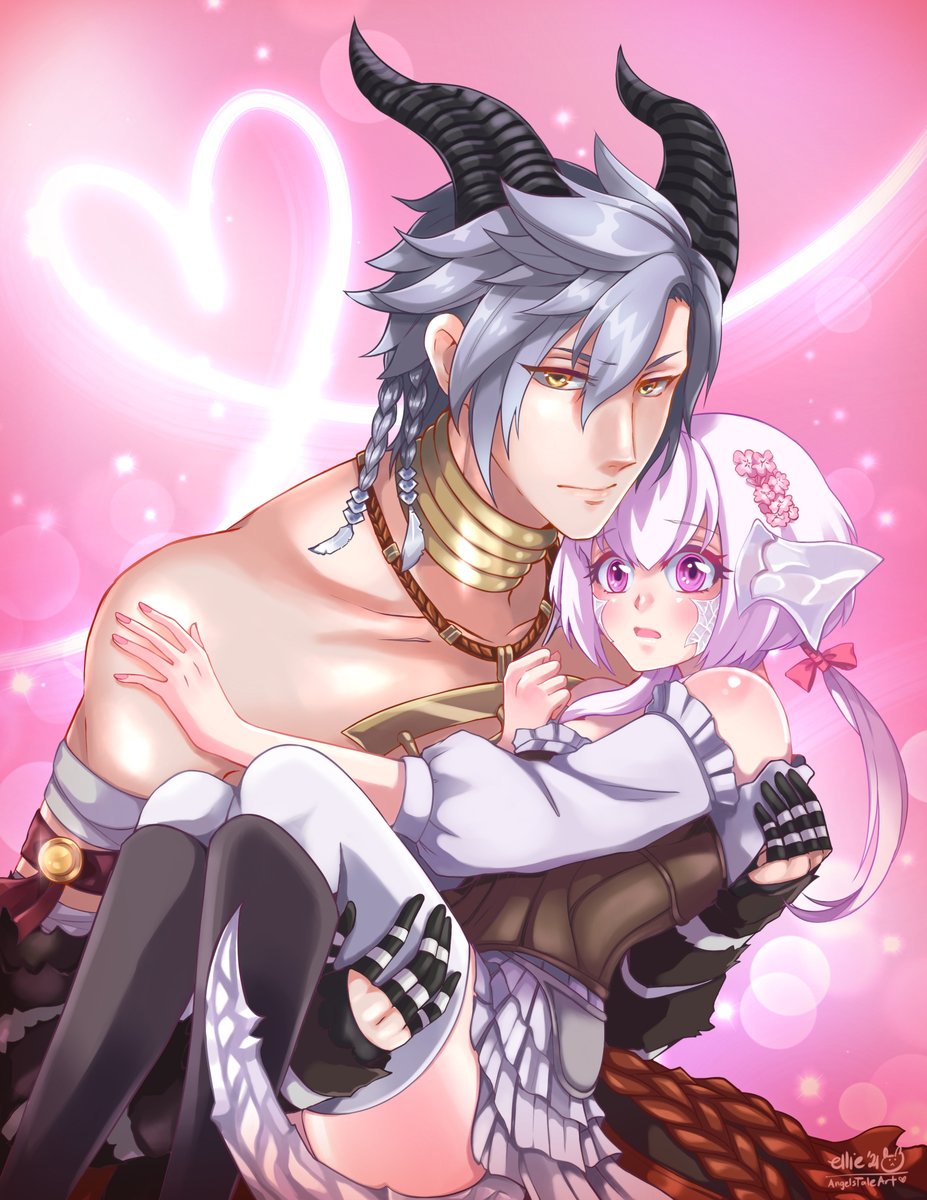 #Pride2022 commission of Zimren and Arishi, @BobCat08501256 and @Grymsthalwyn's WoLs. ❤️ ----- Check out my pinned post to order a #PrideMonth character commission. 50% of all proceeds go to Stonewall UK! #Pride #FFXIVArt #FFXIVWoL