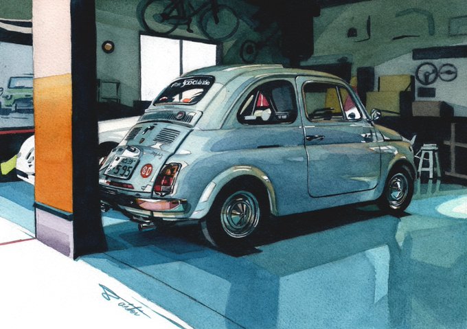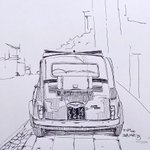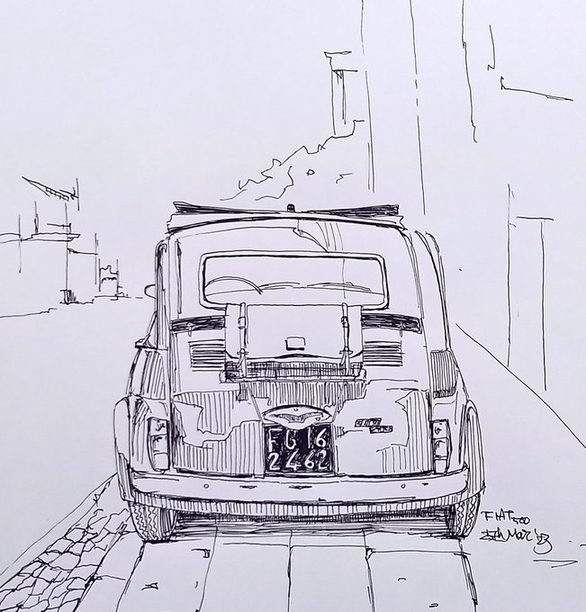 一発描き🐰62日目 最近集中力が上がらなくて一発描きをするのがムズい、3台目でやっと形になりました(T T)それでも何か変💦 スローペースです🐌🐈 #一発描き #模写 #art #drawing #illumination #100日チャレンジ #イラスト #イラスト好きさんと繋がりたい #Fiat500 石畳をしみじみ描いてみたいです