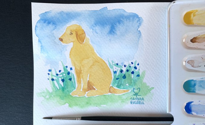 A wee doggie for this week’s #watercolour for #colour_collective using #BrittanyBlue & #FiligreeGold. 💙🐕💛🎨 #WatercolourPainting #KidLitArt #illustration #DogsOfTwitter #dog #Illustrator #ChildrensBooks