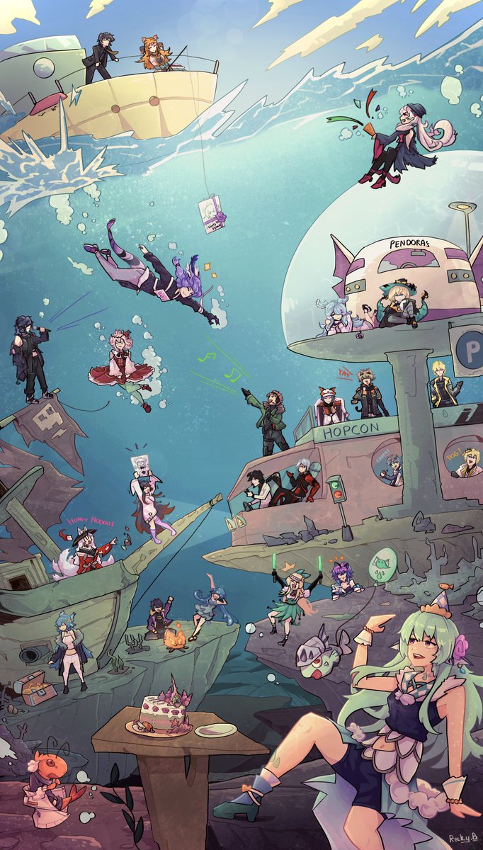 A bit late, but here is our collab art for Finana, Happy Birthday!! 🌊✨ #Finanart #FinanaBirthday2022
