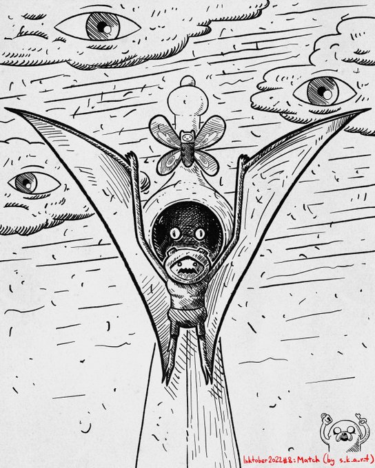 Adventure Time-themed Inktober day #8: Match. 8/31 daily drawings done! Previous day 7: Trip, upcoming day 9: Nest. #inktober #inktober2022 #match #adventuretime #at #finn #jake #fern #drawing #illustration #skart #galleryofskart