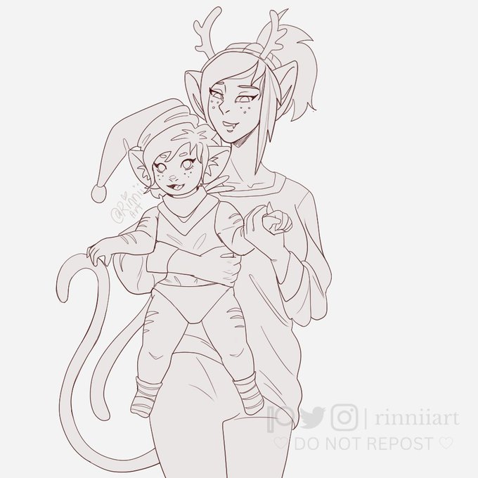 Chonky Christmas baby. I'm just saying, Adora would make a big baby. You can't tell me otherwise. Finn's first Christmas & Catra's a reindeer ~ #catradora #spop #shera #spopfanart #sherafanart #sheraandtheprincessesofpower #artistontwitter #fanart #sapphicart #finn #Christmas