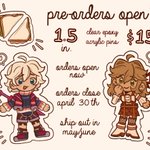 pre-order now for a limited time! mini shulk x fiora acrylic pins! featuring shulk, fiora, and a little sandwich snack for them to share. link to pre-order is below! [#xenoblade #shulk #fiora]