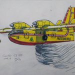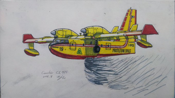 Canadair CL 415, drawn with marker The part of the airplane is quite satisfactory, but I am not very familiar with the scene of using a marker to show the falling of water #illustration #aircraft #firefighters #aviation #doodle