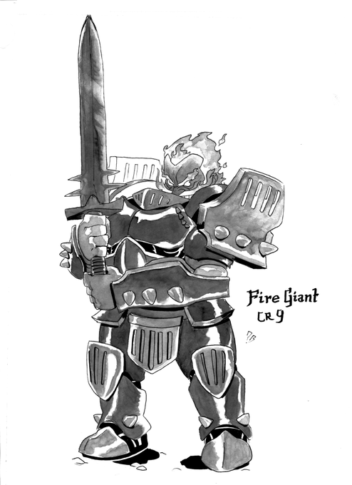 #inktober2021 day 9 / #foetober CR 9 Fire Giant!!!!!OgieńOgieńOgień #dnd #dndart #dnd5e #inktober #firegiant #inktober2021day9