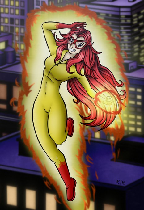 Inktober day 5 - Flame. Thought I’d give Firestar’s new costume a try. #inktober #inktober2022 #xmen #firestar #angelicajones