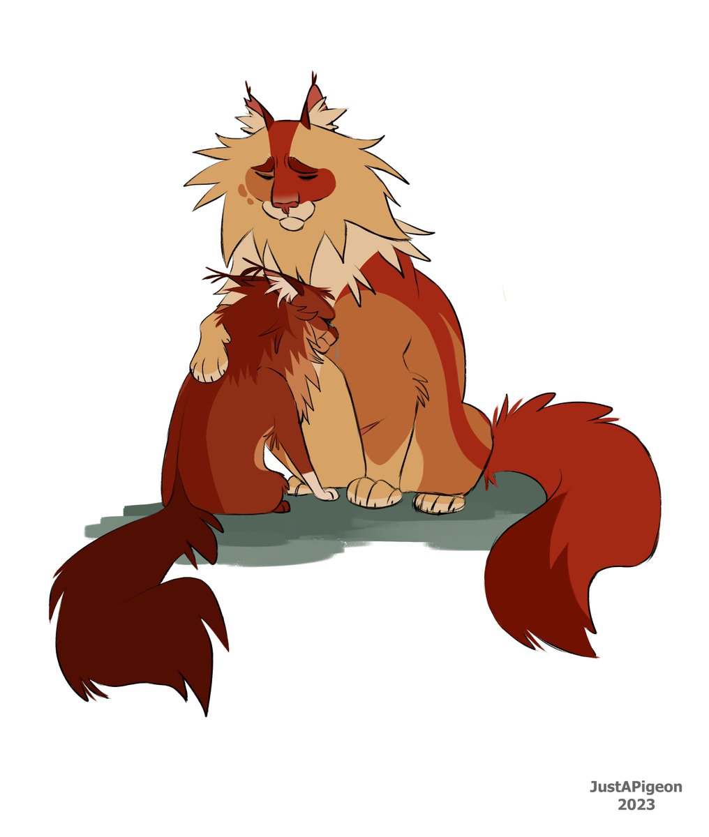 "Good thoughts, good words, good deeds. Just like you taught me, papa" Felt inspired by my own rants and wanted to give them a moment they never had #warriorcats #firestar #squirrelflight