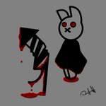 Day 16 of Inktober 2020 Prompt: Rocket D da Bunny and The Damp Rocket #inktober #inktober2020 #inktoberday16 #rocket #damp #lexicon #oc #DdaBunny #webcomic #dark #clipstudiopaint #firework #fireworks #blood #redeyes #creepy #creepycute #kawaii #lookingatyou #monocrome