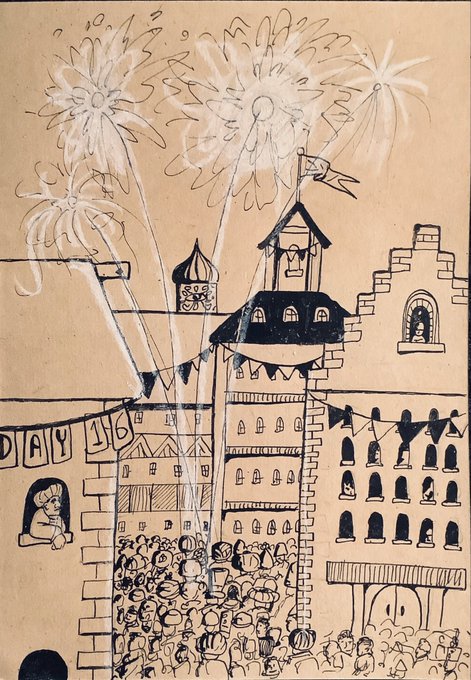 Day 16: 'Rockets in the sky' #inktober #inktober2020 #inktoberday16 #firework #rocket #fantasy #fantasyart #ink