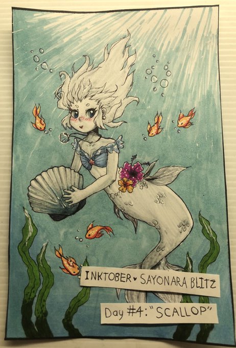 Inktober Day #4: "Scallop" 🐚 This one’s ugly ahhshahs idk why I wanted to color some parts of it ;; #inktober #inktober2022 #inktoberday4 #inktober2022day4 #scallop #inktoberscallop #ink #fishes #mermaid